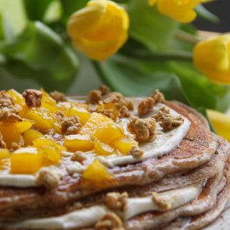 For a special breakfast, these yummy, fluffy pancakes are a great way to switch up the daily routine and use any overripe mangos. Simply irresistible, smothered in mango citrus syrup and vanilla mascarpone cream!