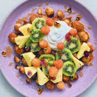 For a quick, refreshing start, try this yummy plate of happiness! This recipe features a medley of vitamin-packed fruits including bananas, raspberry, and, of course, mangos! This dish is also elevated with a drizzle of coconut sauce.