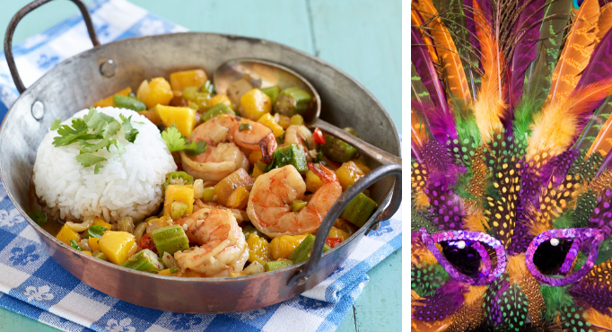 Mardi Gras – Mardi Gras – Shrimp & Mango Gumbo with a Mardi Gras mask