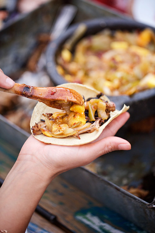 Mango Tacos – Pork Carnitas Tacos with Mango, Tomatillo and Chipotle Salsa
