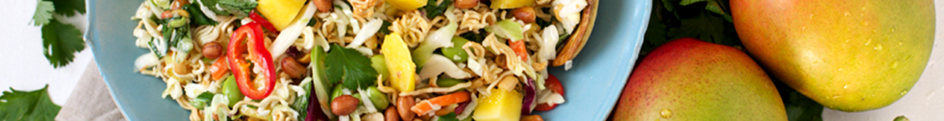 La próxima vez que prepare un aderezo casero para ensaladas, considere los mangos. Se asegurará de elevar sus aderezos, glaseados y vinagretas agregando puré de trozos de mango congelado a la mezcla. Rocíe encima de sus ensaladas favoritas dando frescura, un poco de dulzura para equilibrar y realzar los sabores.