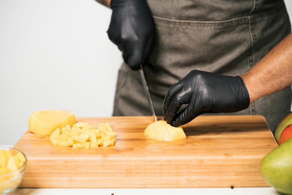 4. CORTE LAS MEJILLAS PARA EL USO PREVISTO y recorte la fruta restante alrededor de la semilla.