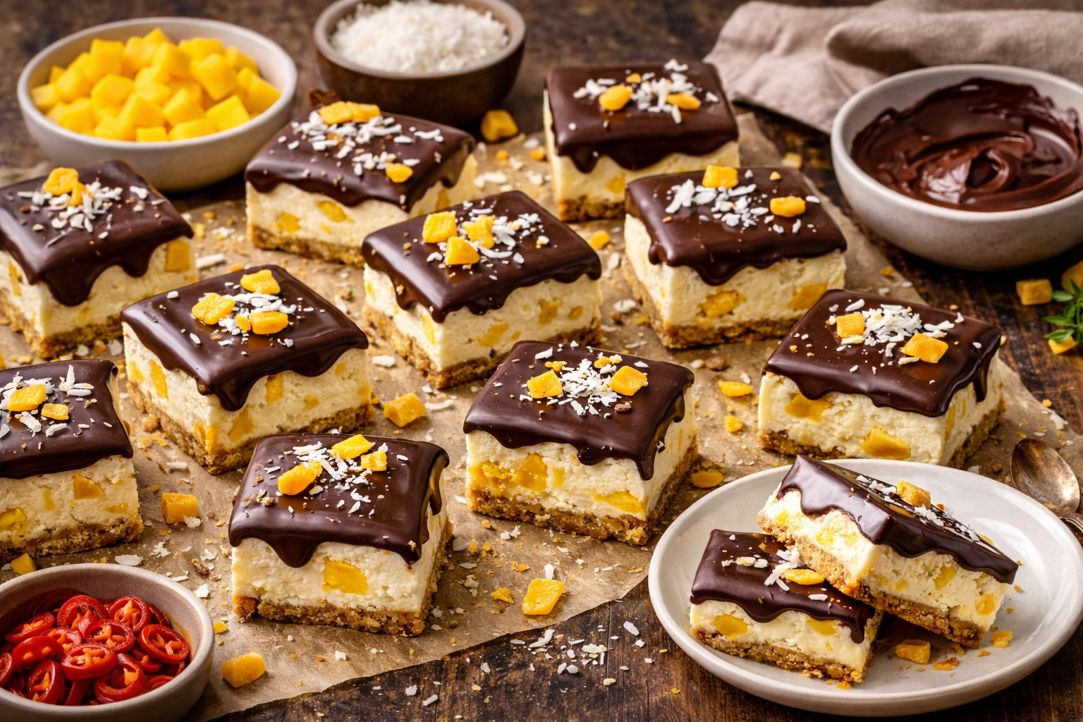 Chocolate-Dipped Mango Cheesecake Bars