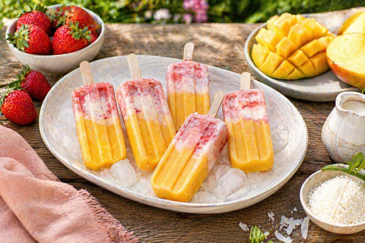 - 1 lb or 2 medium fresh mangos, peeled and thinly sliced into strips