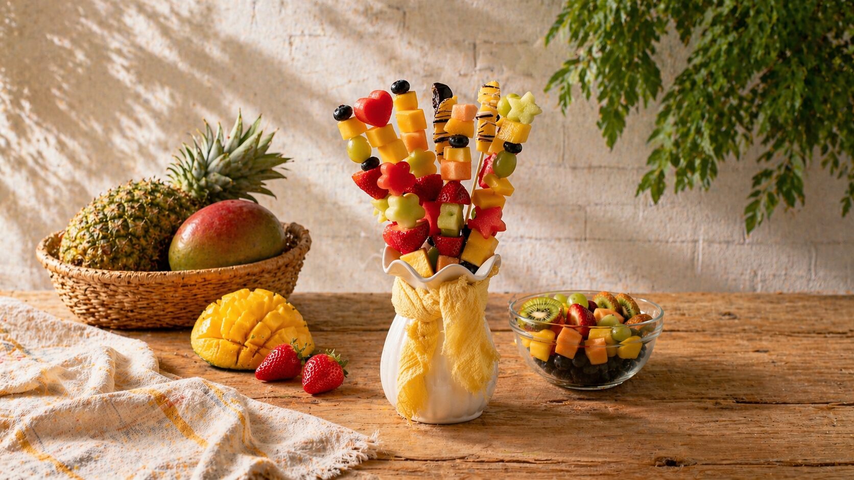 - Roll a long, thin strip of mango into a coil and place it in the center.